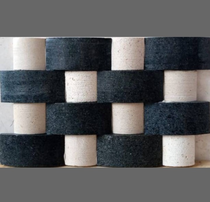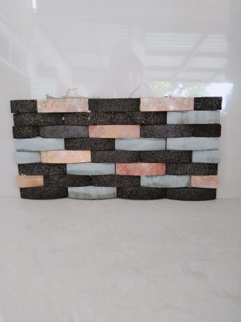 merupakan perpaduan batu alam andesit dan baut ziolit yang dibentuk seperti tangga menampilkan kesan unik dan aestetik jika dipasang untuk finishing dinding rumah.